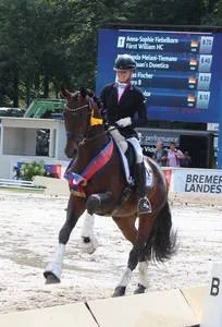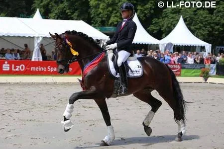Donna Primera (Staatsprämien und Elitestute) is a full-sister to one of the worlds most successful dressage and breeding stallion Blue Hors Don Schufro . The sire and dam sire of Donna Primera, Donnerhall and Pik Bube I, need no further introduction. Her great grand sire Unkenruf also competed in Grand Prix.